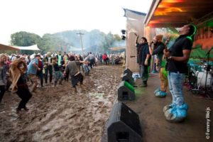 Daarnaast is het weiland waarop je je bezoekers ontvangt, normaliter al slecht bestand tegen zoveel regen in korte tijd, voeg daar honderden transportbewegingen aan toe van vrachtwagens, shovels, trekkers en heftrucks en je hebt al een modderbak voor je de poorten opent. Modder is iets wat je als organisatie in de regel zoveel mogelijk wilt voorkomen. Het is (vaak) niet mooi, niet prettig voor bezoekers en zorgt voor veel extra schoonmaakkosten aan tenten en vloeren.