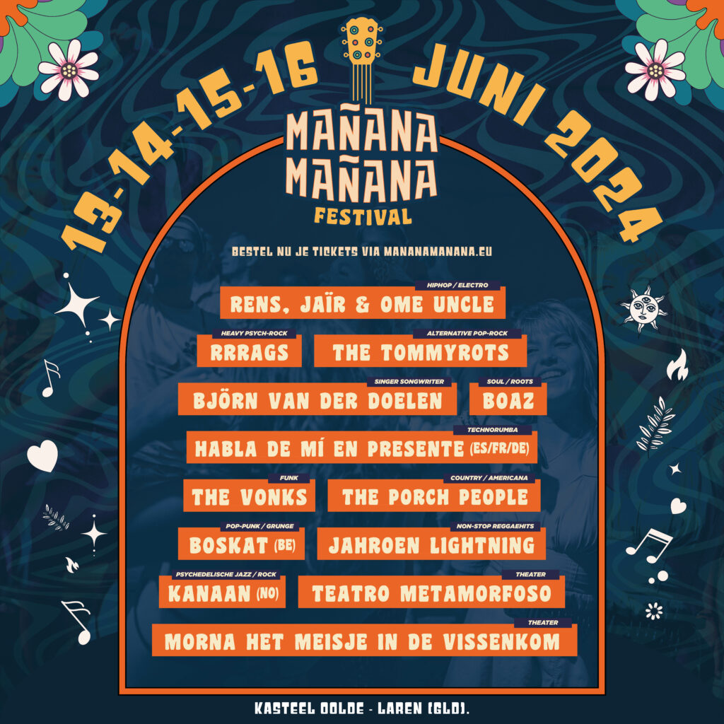 Rens, Jaïr & Ome Uncle | RRRAGS | The Tommyrots | Björn van der Doelen | BOAZ | Habla de Mí en Presente | The Vonks | The Porch People | BOSKAT (BE) | Jahroen Lightning | Kanaan (NO) | Teatro Metamorfoso | Morna het meisje in de vissenkom